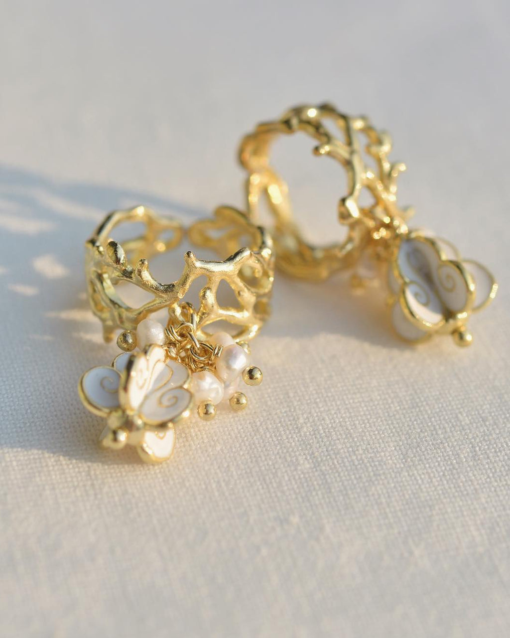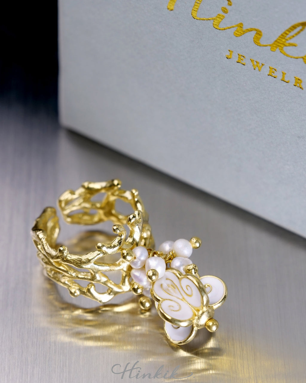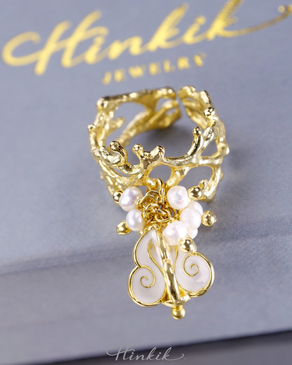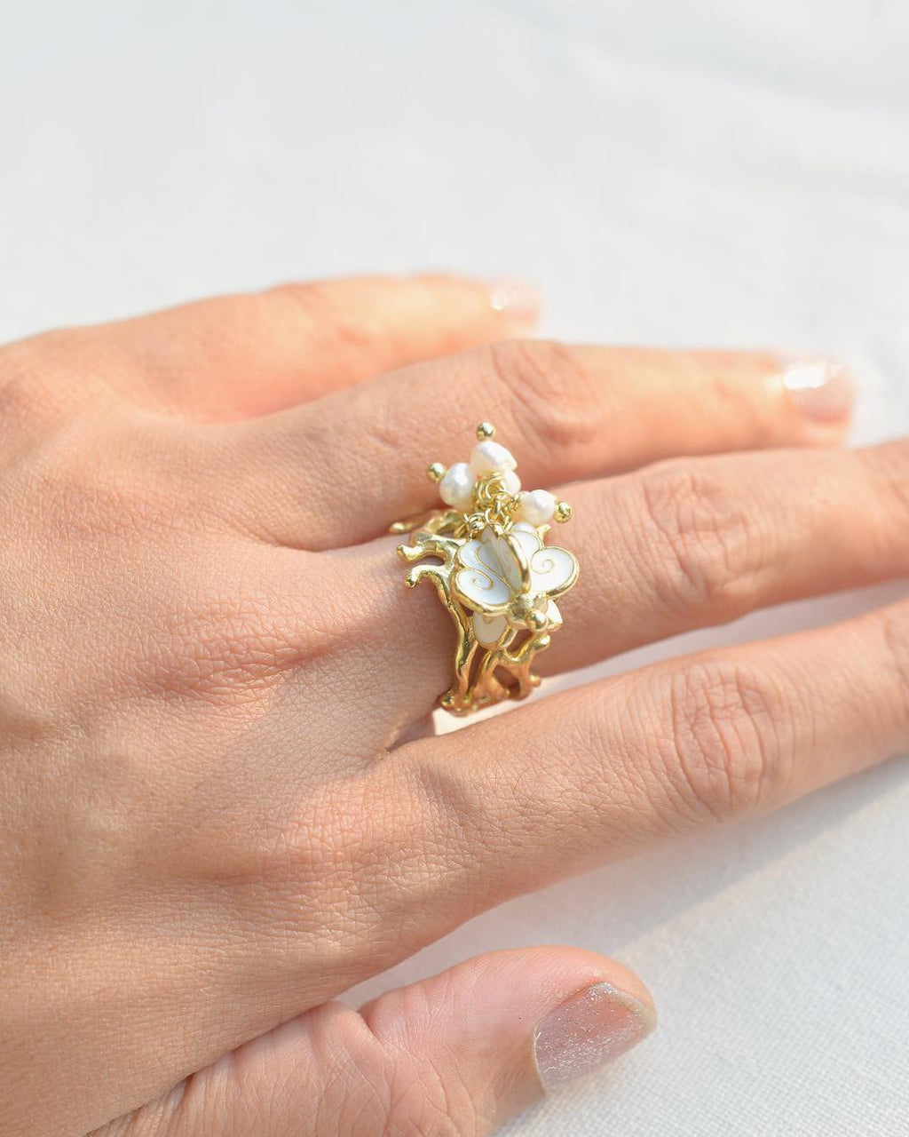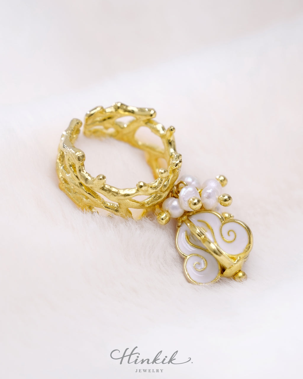 เติมเต็มความหมายดีๆ ให้กับนิ้วมือของคุณด้วย "แหวนดอกรัก" สัญลักษณ์แห่งความรักที่ยั่งยืน ตัวเรือนดีไซน์แบบชาร์ม (Charm) โดดเด่นด้วยดอกรักลงยาอีนาเมลสีขาว ตัดกับสีทองเหลืองอย่างลงตัว งานละเอียด ปราณีต